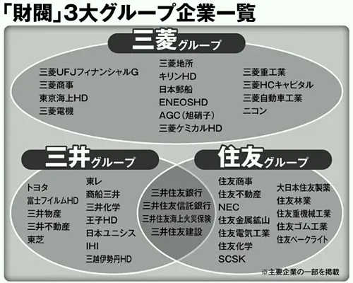 「三菱、三井、住友」は日本三大財閥で、それぞれのグループ企業は有名なところが多い。
