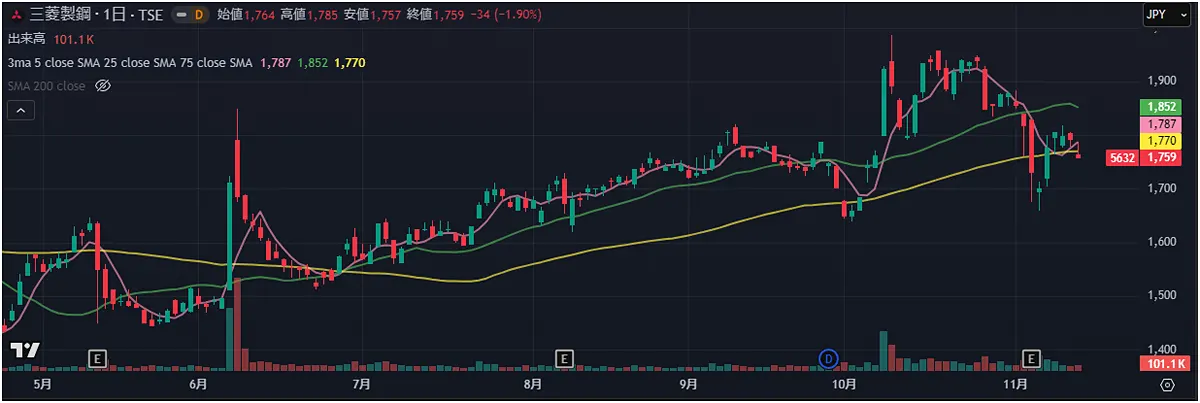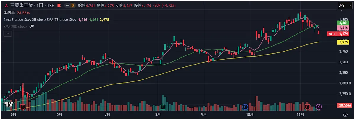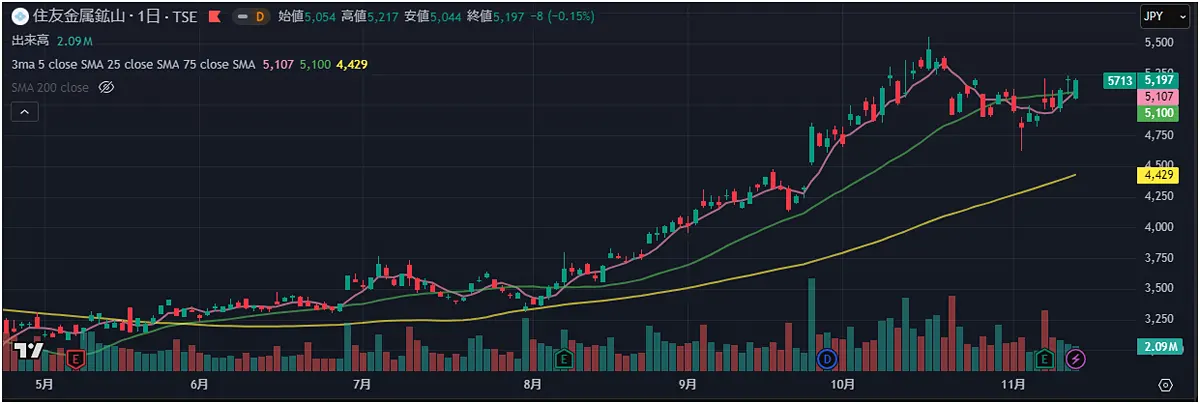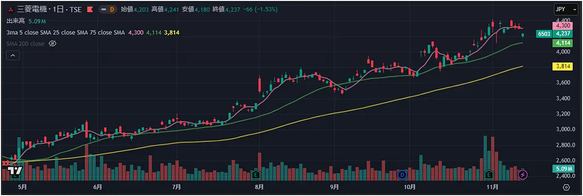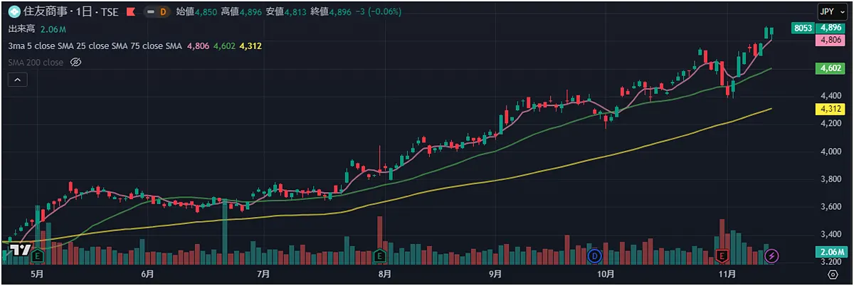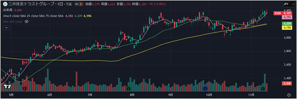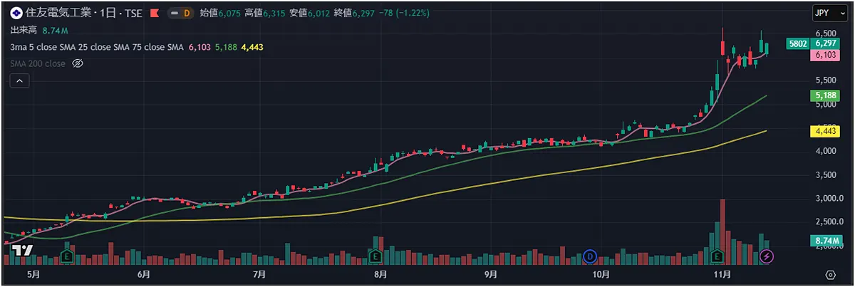 そこで、三大財閥銘柄で過去半年ほどでチャートが右肩上がりのものを調べてみた。