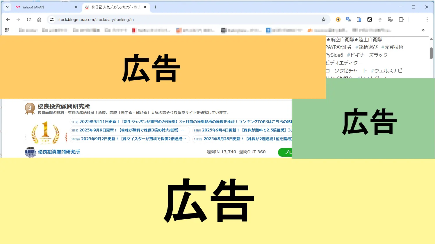 ただ、ここ1,2年くらいから広告が”でかく”、”多く”なってきた。以下の図のような状態。