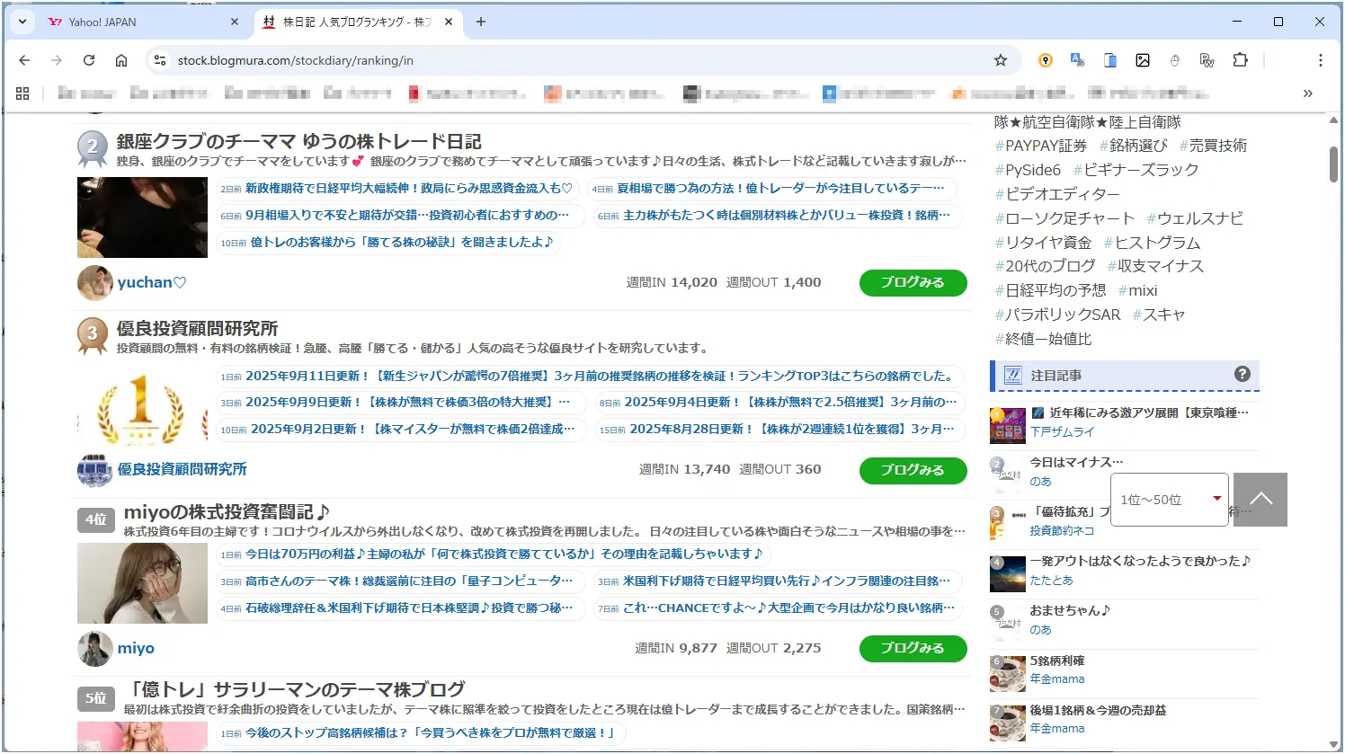 現在は株式投資関連の皆さんのブログを拝見させていただいてます。勝ち続けてる人や負け続けてる人まで多種多様な方々のブログ満載です。とにかくためになるサイトです。