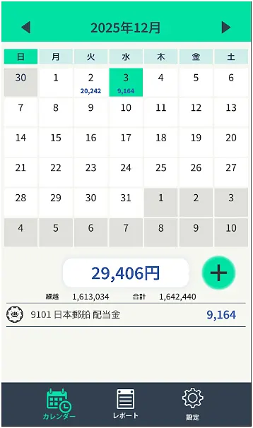 株取引140日目:9101 日本郵船の配当金がチリンと入りました(*^^*) 取引日記 2025.12.032025.12.04 今日もお小遣い程度の配当金が入りました。数日分の昼飯代ゲットですね!(^^)! 目次 売り銘柄買い銘柄配当金収支今月の収支一覧 売り銘柄 なし 買い銘柄 なし 配当金 銘柄名 :日本郵船 銘柄コード :9101 入金額 :9,164円 収支 ・当日 +9,164 ・月間 +29,406 ・年間 +1,642,440 今月の収支一覧