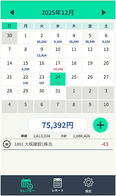 株取引151日目:1801大成建設1株(ミニ株)でデイトレ、、、今日は負け(T_T) 取引日記 2025.12.24 残念!今日はマイナスで終わってしまった。まあしょうがないっす。明日また参戦。 目次 買い銘柄売り銘柄収支今月の収支一覧 買い銘柄 1801 大成建設 売り銘柄 1801 大成建設 収支 ・当日 -43 ・月間 +75,392 ・年間 +1,688,426 今月の収支一覧
