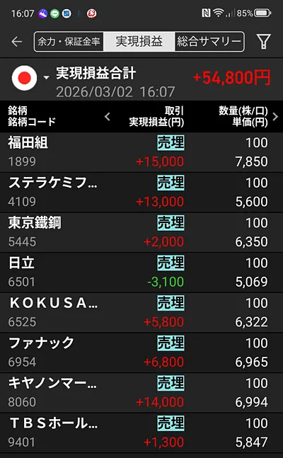 今日は月初めです。気持ち新たにスタート。まあ初日がプラスで終えられたのは良かったですね(*^^*)