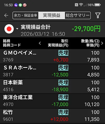 | ・当日 | -29,700 |