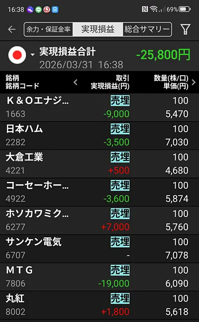 | ・当日 | -25,800 |