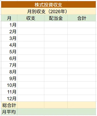 年間の収支記録です。1年間の月別収支一覧を載せていきます。